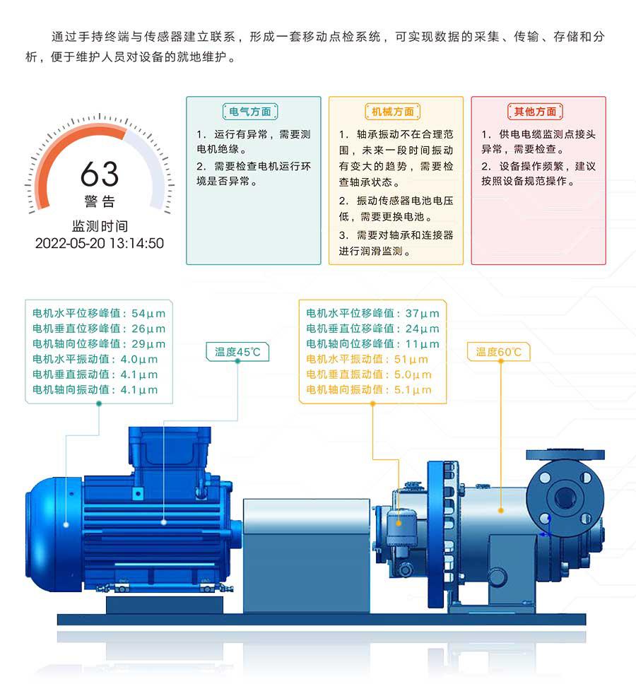 振動監測能夠“定量”監測故障的類型,并進行有針對性的預測性維護。對于可延遲停機的設備,進行科學的判斷。