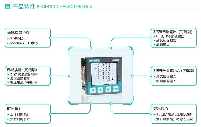 PUMG130三相多功能電力儀表采用先進的32位RAM處理器和數字信號處理技術設計而成,集全面的三相電參量測量/顯示、電能累計、故障報警、諧波測量、開關量輸入繼電器輸出及網絡通訊于一體。標準的72面板,大屏LCD液晶屏,標配的1路RS485通信接口。具有精度高、隔離性強、性能穩定、抗干擾能力強等優點。