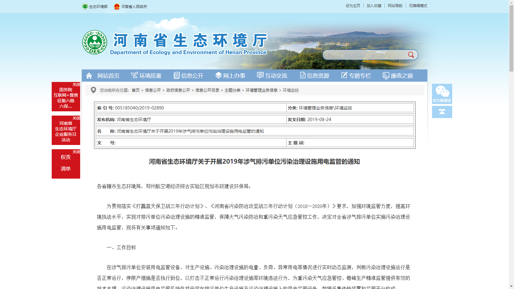 目前,各大省市都在推廣環保用電監管系統,以河南省為例,為貫徹落實《打贏藍天保衛戰三年行動計劃》、《河南省污染防治攻堅戰三年行動計劃(2018—2020年)》要求,加強環境監管力度,提高環境執法水平,實現對排污單位污染治理設施的精準監管,保障大氣污染防治和重污染天氣應急管控工作,決定對全省涉氣排污單位實施污染治理設施用電監管。