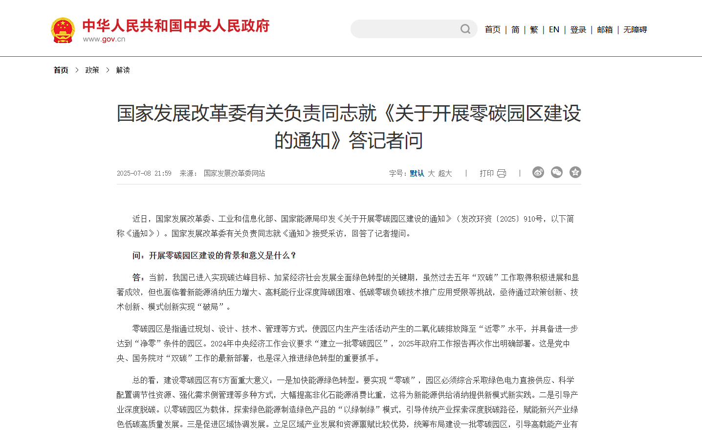 國(guó)家發(fā)展改革委于2025年7月8日發(fā)布關(guān)于零碳園區(qū)建設(shè)的通知,正式拉開了全國(guó)范圍內(nèi)零碳園區(qū)規(guī)模化建設(shè)的序幕。隨著“十五五”規(guī)劃的推進(jìn),2025年底至2026年初,從國(guó)家到地方,一系列政策文件接連出臺(tái)。